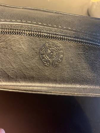 Black Leather Chrome Hearts oversized sunglass case in great condition. Designer leather glasses case with small interior pocket, zipper is fully intact and functional. Most I see have broken sword zipper so this one still holds its real value. Dimensions are roughly 7.5”x 2.5” x 2”